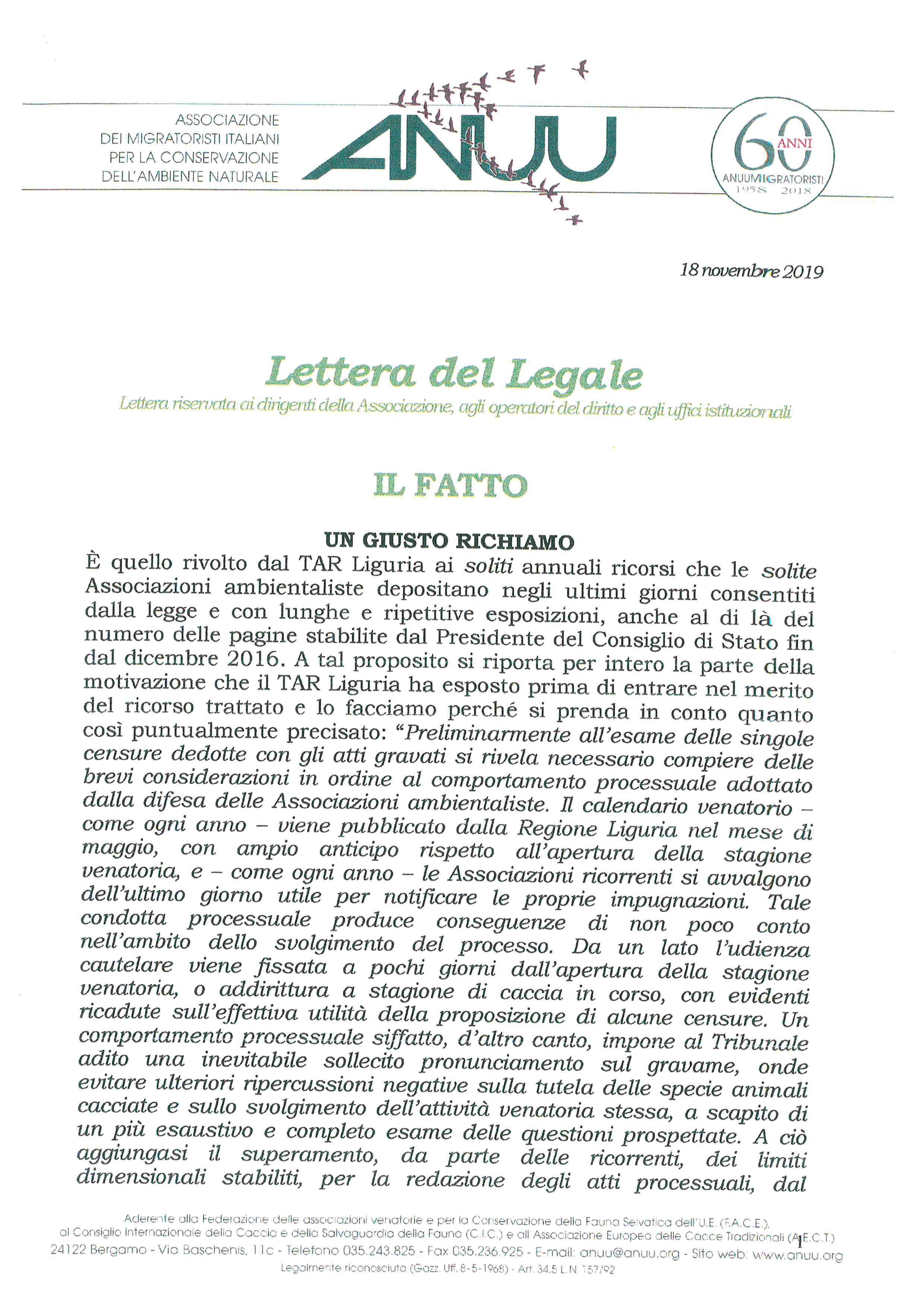 E' il periodico quadrimestrale ufficiale dell'Associazione, inviato gratuitamente a domicilio a tutti i soci. Esce nei mesi di aprile, agosto e dicembre, in 24 pagine che trattano della caccia e delle sue tradizioni, di agricoltura e gestione del territorio, di conservazione ambientale, di studi e ricerche sulla fauna selvatica, di eventi e manifestazioni internazionali, delle collaborazioni in atto tra l'ANUU ed altri organismi operanti nel settore della caccia e della fauna.